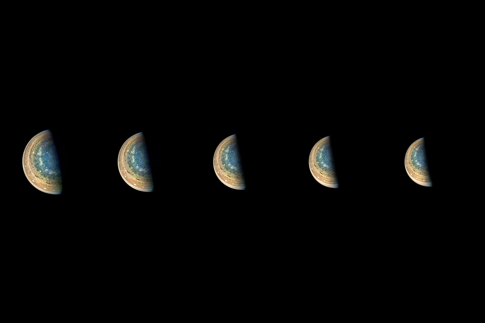 Directly, the images show Jupiter. But, through slight variations in the images, they indirectly capture the motion of the Juno spacecraft itself, once again swinging around a giant planet hundreds of millions of miles from Earth.